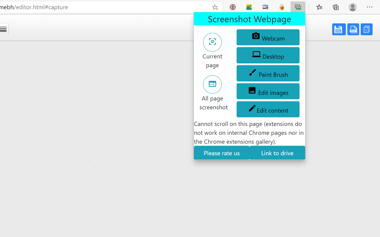 This extension provides you a simple way to take a full page screenshot of your current browser window. Click on the extension icon and wait for the extension to take screenshots of each part of the page, piece them together into one image and allow you to edit and download it as a file to your computer.
